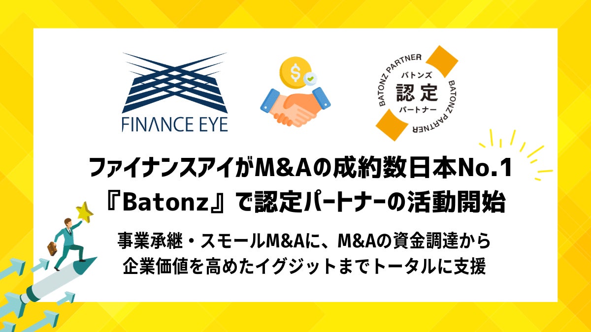 ファイナンスアイは日本1位のM&A成約数を誇るBATONZ(バトンズ)の認定パートナー