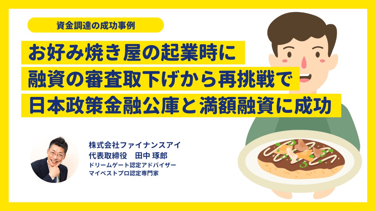 お好み焼き屋の起業。融資審査の取下げから再挑戦。公庫の満額融資に成功。