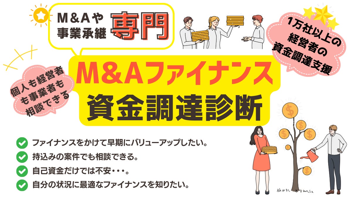 M&Aに関連する資金に特化した資金調達が分かります。アナタの状況に適した、ファイナンススキームを提案します。