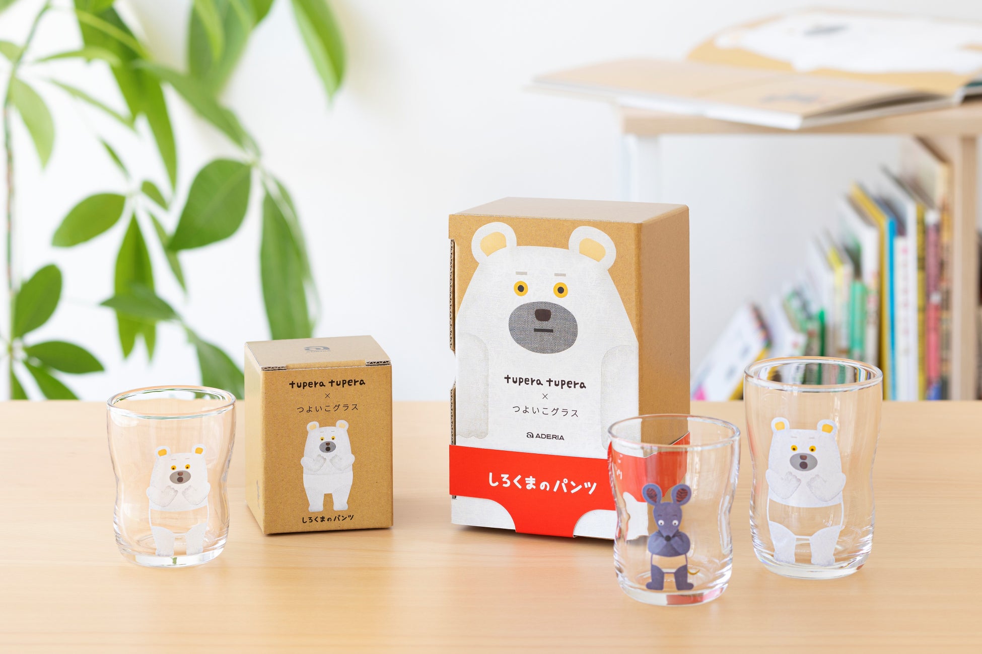 「つよいこグラス」シリーズは、ものを丁寧に扱う経験や天然素材であるガラスという“本物”に小さな頃から触れさせる事が大切、という食育指導士でもある保育士さんの視点から生まれた、小さな手でも持ちやすい形状とちょうど良い大きさが特徴の子ども向けガラス食器です。今回、tupera tuperaが手がける人気絵本「しろくまのパンツ」が2022年に刊行10周年を迎えたことに着目し、コラボレーションを提案し製品化に至りました。