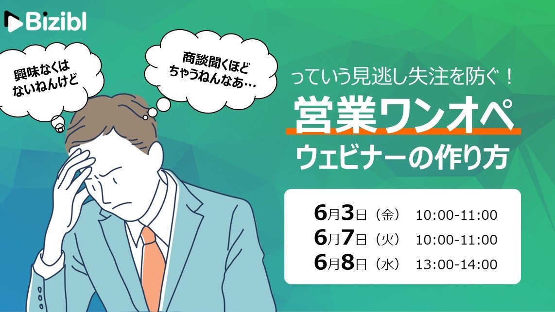 株式会社Bizibl Technologies(本社:大阪市北区、代表取締役:花谷燿平、以下当社)は、開発・提供する少人数・定期開催ウェビナーSaaS「Bizibl(ビジブル)」において、営業マン向けに「見逃し失注を防ぐ!営業ワンオペウェビナーの作り方!!」と題したセミナーを、2022年6月3、7、8日に連日開催いたします。