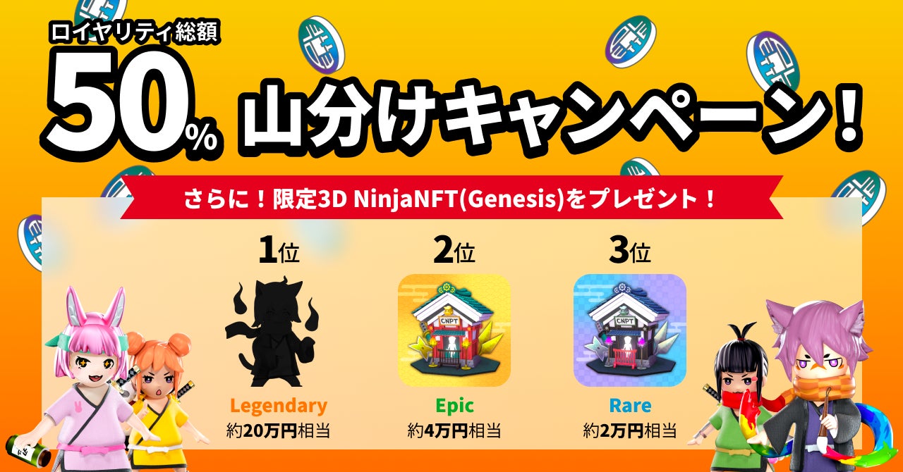 株式会社HashPalette(ハッシュパレット 本社:東京都港区、代表取締役CEO:吉田世博、以下HashPalette)が提供する公式NFTマーケットプレイス「PLT Place」において、2022年9月1日より開始するNFTの二次流通機能を記念して、ブロックチェーンゲーム「CryptoNinja Party! 」NFTの「ロイヤリティ総額50%山分けキャンペーン」を実施いたします。