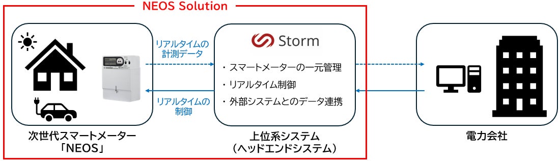 「NEOS Solution」は、スマートメーター本体の高機能化により、電力量の計測に加え、大量のデータを収集・処理し、監視・制御まで行うことが特長です。