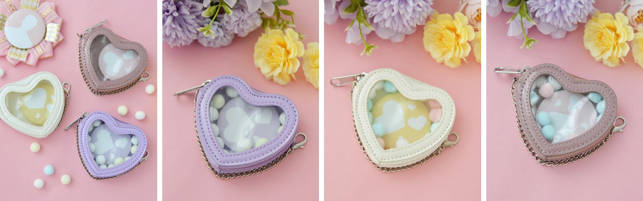 ①「ハート覗いて」推し活用クリア窓付きハートバッグ 各 3,780円(税込)