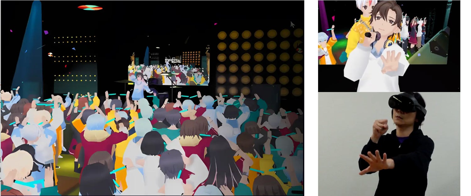 Meta Questを使って、場所や距離にとらわれずに、カラオケを通した交流が実現します。具体的には、都心から地方のファンに向けたライブパフォーマンスはもちろん、遠く離れた、沖縄と北海道での「デュエットや共演(現在開発中)」なども実現可能です。