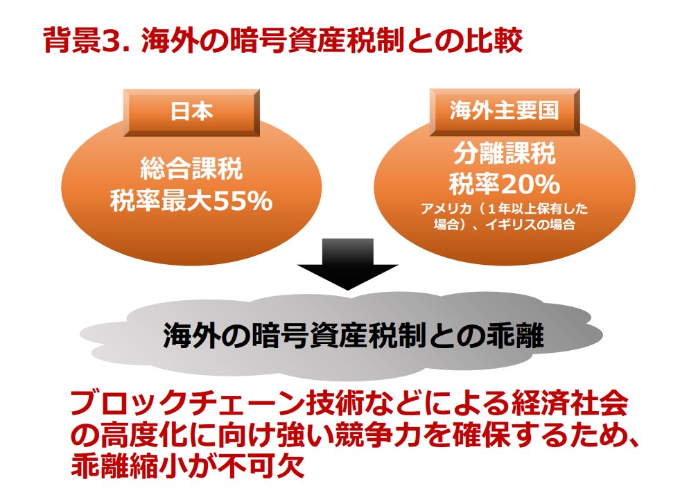 Web3.0産業活性化のため、20%申告分離課税と損失繰越、発行者以外の第三者法人が保有する暗号資産法人税、資産税、暗号資産同士の交換時に係る課税の整備を要望