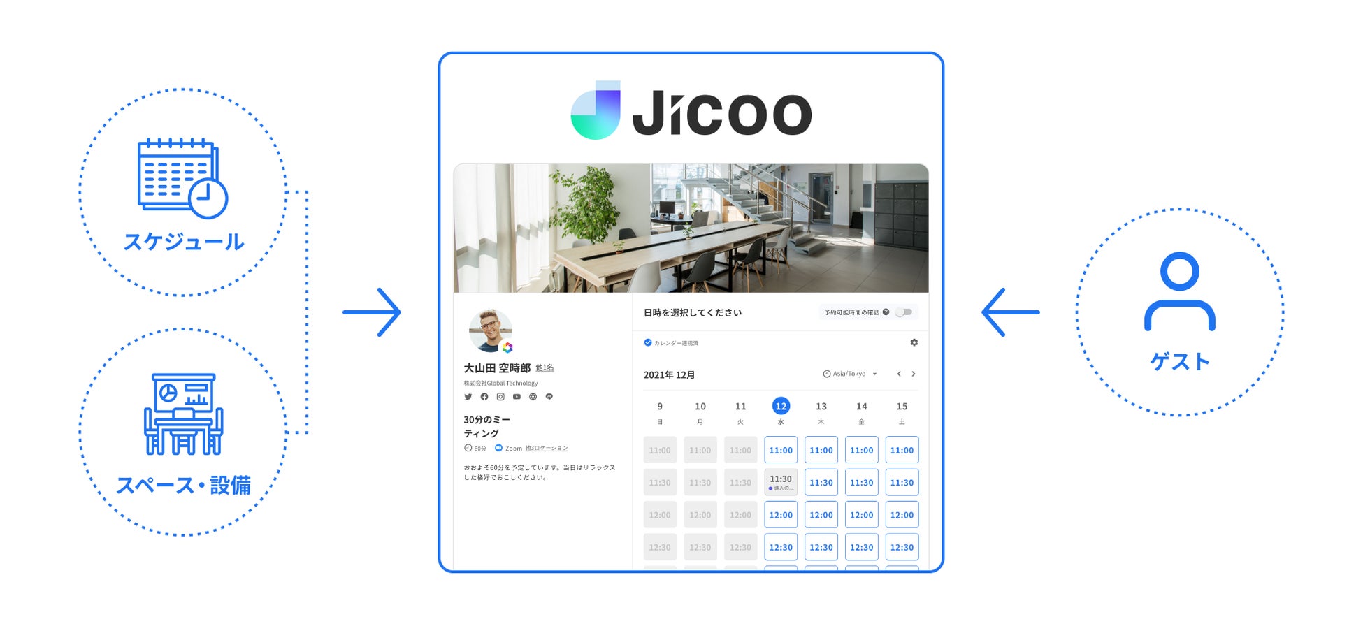 Jicooは「時空を超えて人と仕事がなめらかにつながる世界を創る」をミッションに、あらゆるリソースを予約可能にしていくプロダクトを提供していきます。
