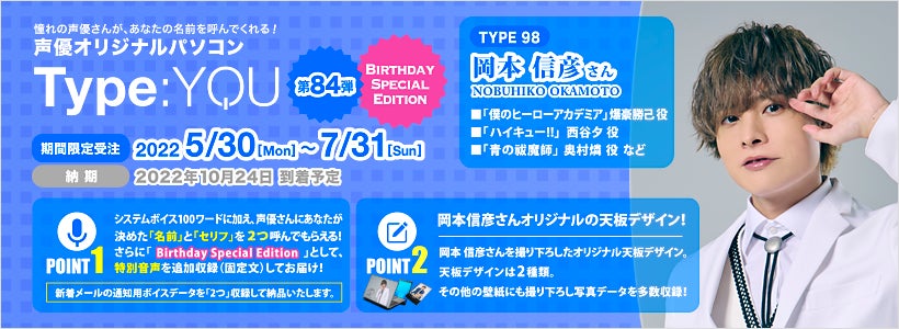 声優オリジナルパソコンに岡本信彦さんが登場!【Type:YOU -タイプユー-】第84弾~Birthday Special Edition~は5月30日よりスマッシュコアで受注開始!