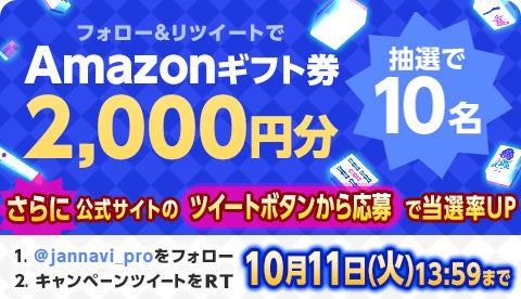 「ジャンナビ麻雀オンライン」amazonギフト2000円分が当たるTwitterキャンペーン開催