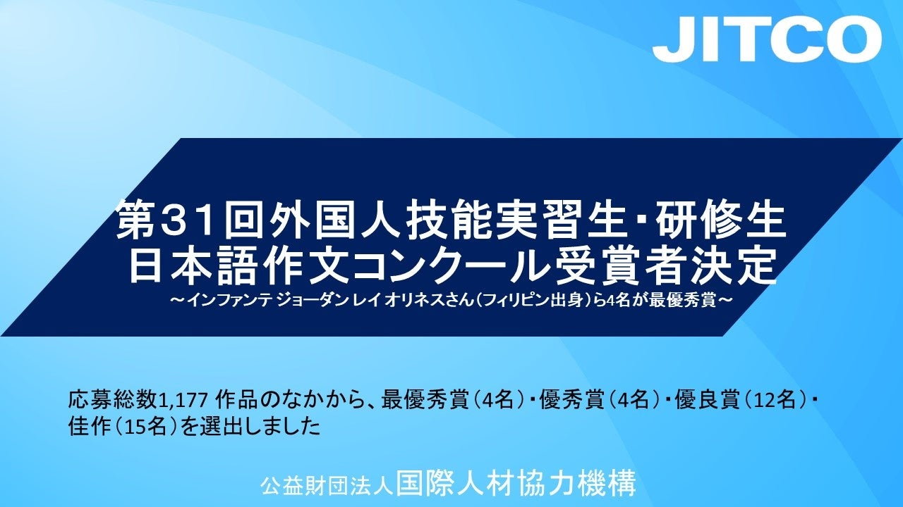 JITCO第31回外国人技能実習生・研修生日本語作文コンクール受賞者決定
