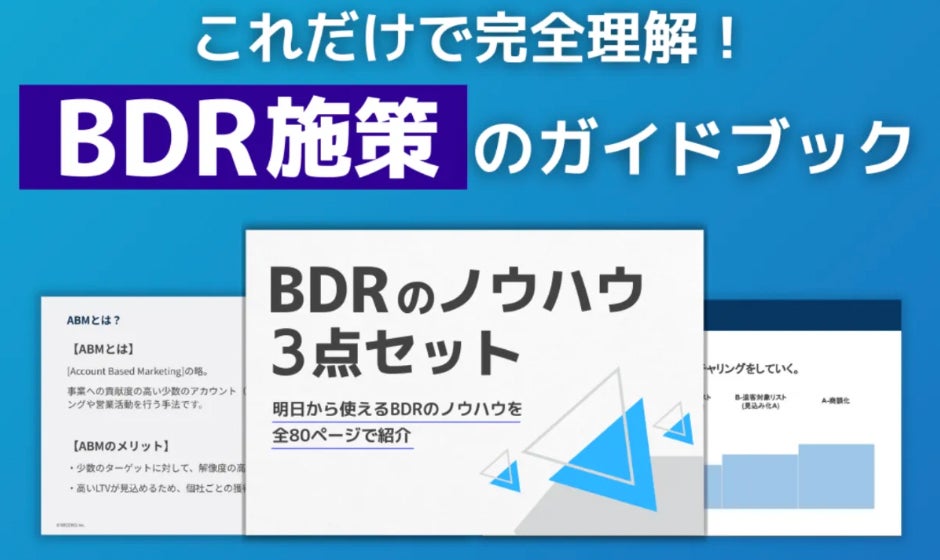 今回は弊事業のBDRにおける実践例をもとに制作した、「インサイドセールス・BDR施策ノウハウ3点セット」をお役立ち資料として公開しました。