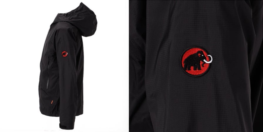 50 ×50 デニールを使用し、耐久性も高い。左袖にはマンモスロゴの刺繍が施されている。