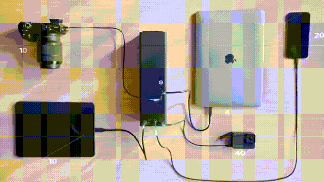 Energy Block は、バッテリー本体に出力ポートがあります。足りない場合はDCマウントやACマウントで出力ポートを拡張させる事もできます。