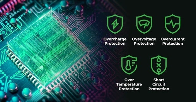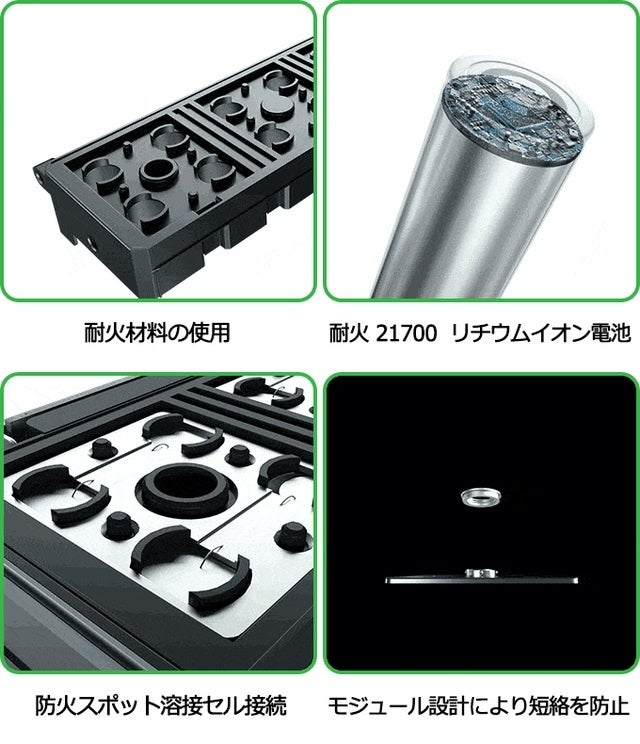 **耐火性について、火の中に投げ入れても機能するという意味ではありません。特定の温度を超えると安全システムが起動し、強制的にシャットダウンして過熱や爆発を防ぎます。