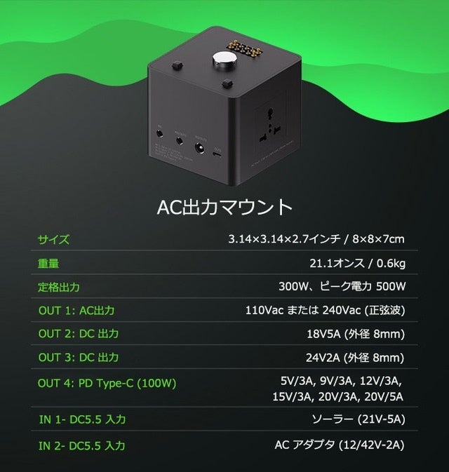 - コンパクト&パワフル コンパクトなボディに300Whの容量