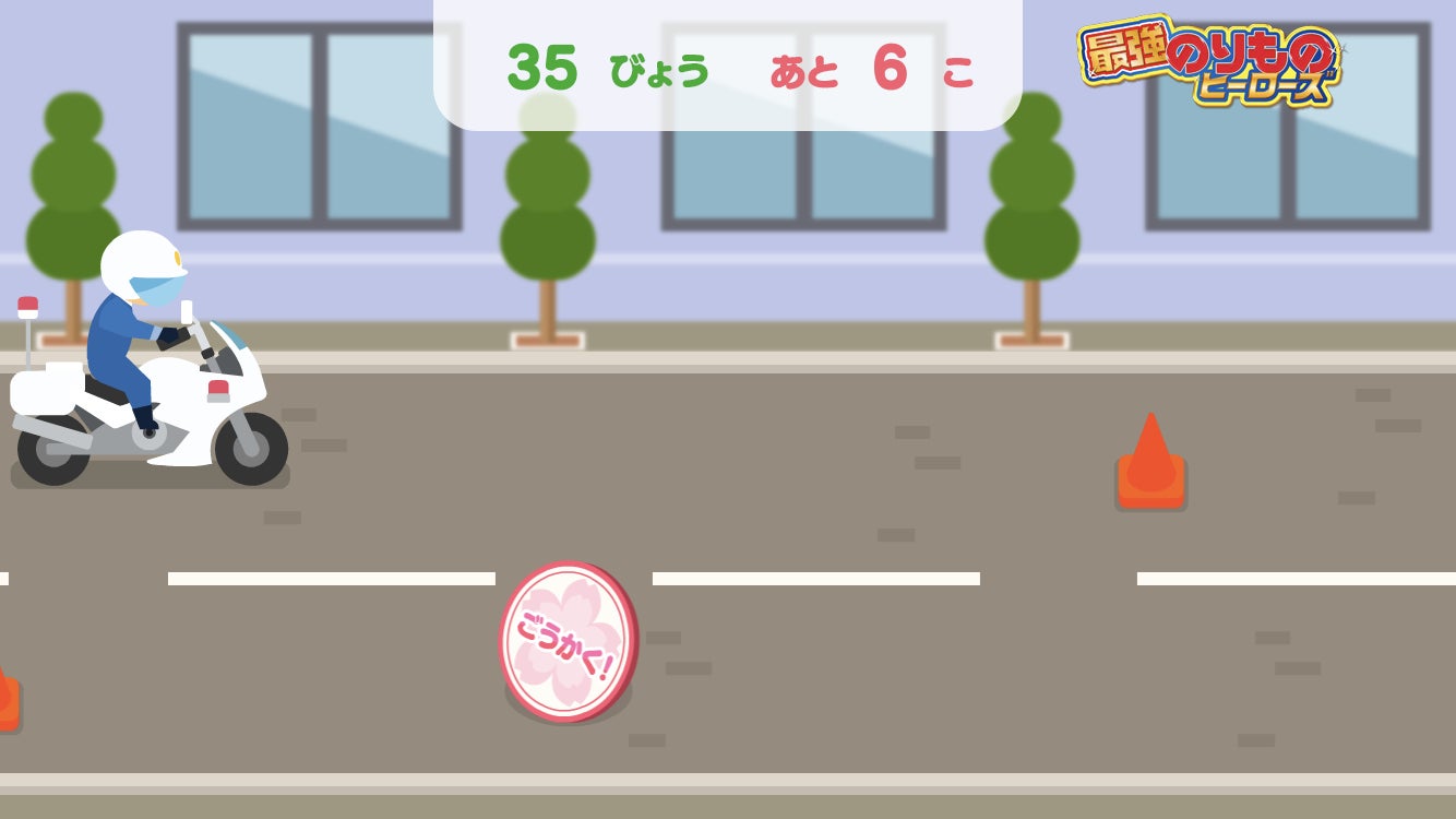 アプリ内店舗では、「最強のりものヒーローズ」の中に登場するのりものから電車・消防車・白バイにまつわるお仕事「でんしゃうんてん」「しょうかくんれん」「しろバイれんしゅう」の3種のゲームをお楽しみいただけます。