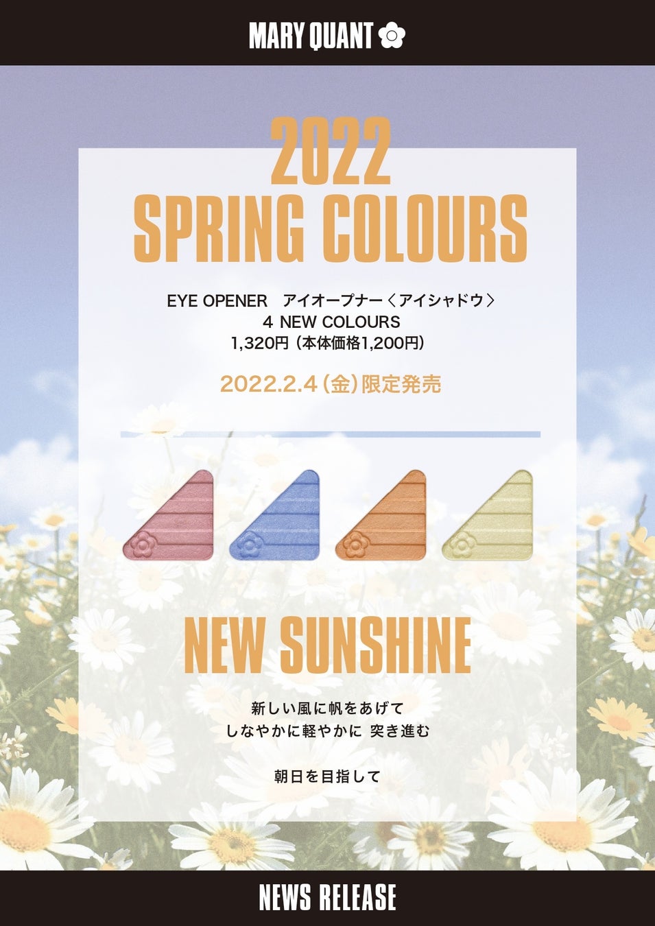 マリークヮントの120色アイオープナーに2022年春の新色が仲間入り 「NEW SUNSHINE」をテーマに新生活を彩る4色が2月4日より限定発売