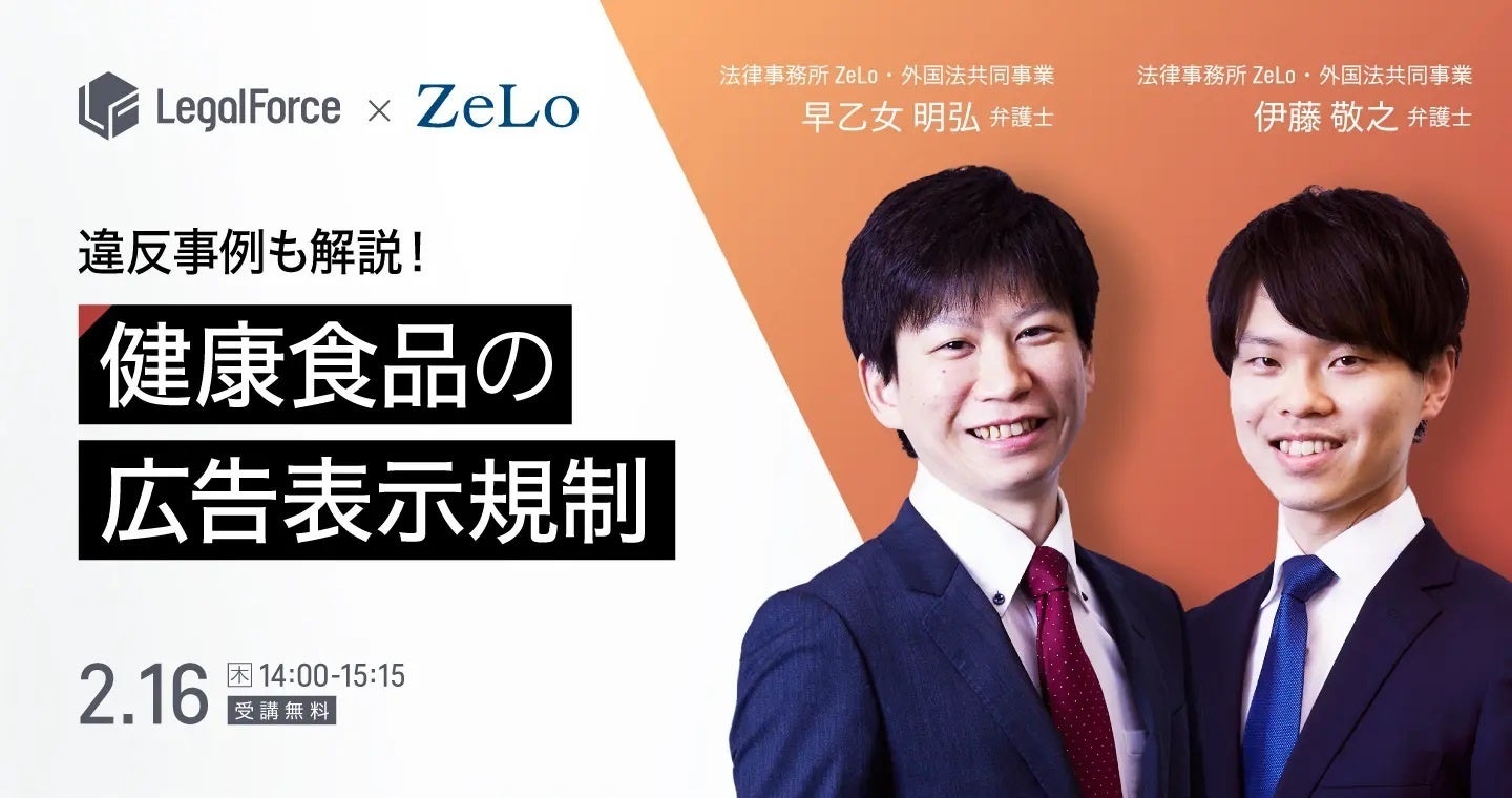 法律事務所ZeLo・外国法共同事業(所在地:東京都江東区、代表弁護士:小笠原匡隆、以下「法律事務所ZeLo」https://zelojapan.com/) は、ヘルスケア分野を専門的に取り扱うチームを発足させ、顧問サービス「LPOサービス(Legal Process Outsourcing)」の提供範囲を拡充したことをお知らせいたします。広告・表示をはじめとした規制対応から、ビジネスモデルの設計支援、特許の出願・維持戦略、ライセンス契約、医療訴訟まで、ワンストップで質の高いリーガルサービスを提供します。また、サービス拡充に伴い、ヘルスケアに関する無料ウェビナーを開催いたします。お問い合わせなどの詳細は、当事務所ウェブサイト(https://zelojapan.com/practice/healthcare)をご覧ください。