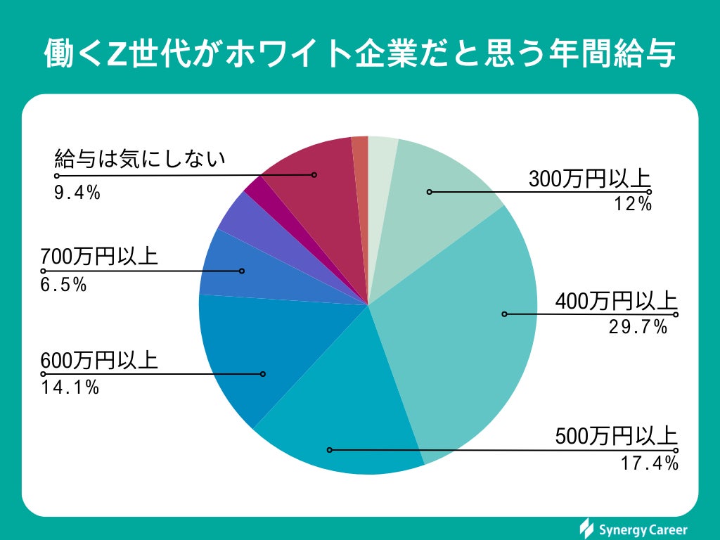 【ホワイト企業の認識調査結果:働くZ世代が考えるホワイト企業の年間給与】