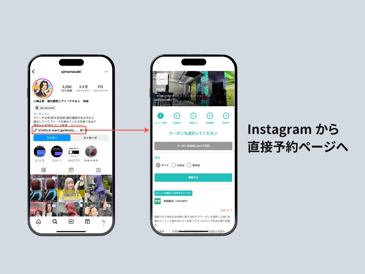 TikTokで認知拡大して、Instagramで予約を受け、アプリ会員へ。という時代に合わせた予約導線と、SNSを効率的に運用することで他サロンとの差別化にも繋がっています。
