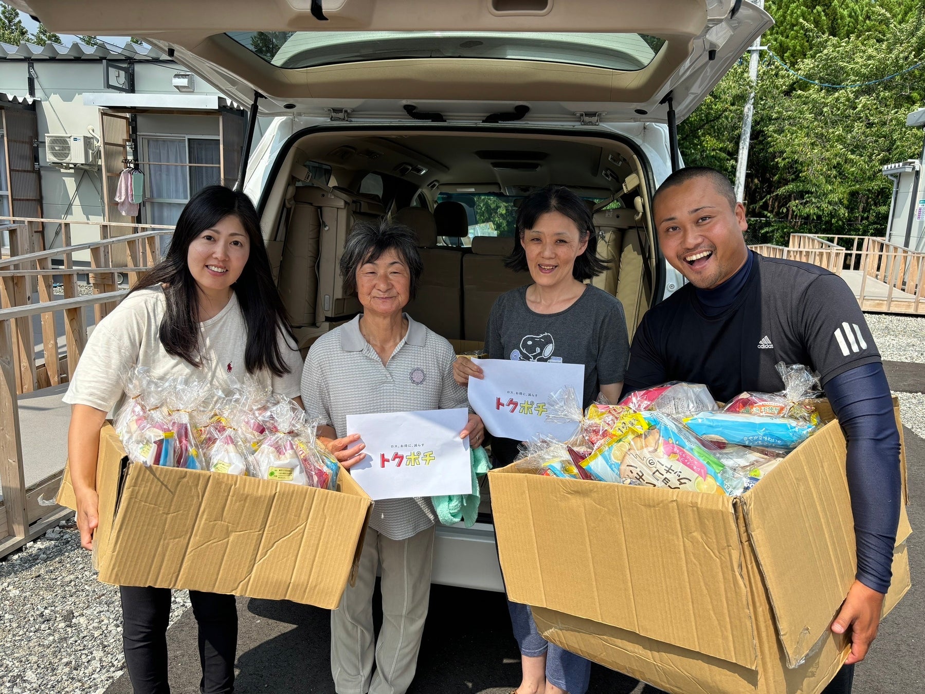能登半島地震での孤独死・自殺者を減らすためお菓子などのフードロス食品を届ける我時朗(がじろう)