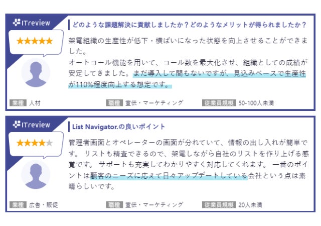 アウトバウンドコールシステム『List Navigator. 』が「ITreview Best Software in Japan 2024」のTOP50に選出