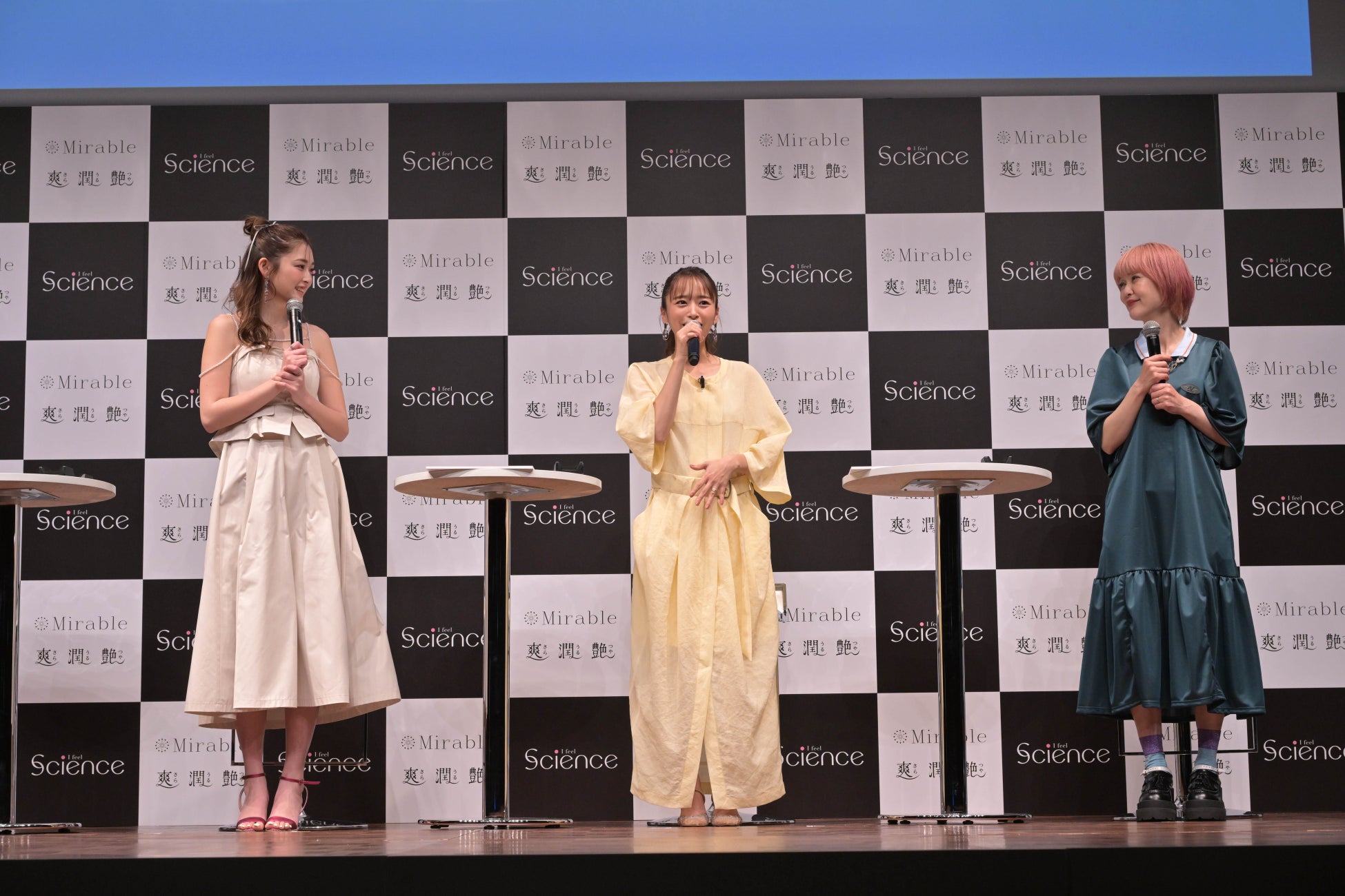 「ミラブルエイジングシリーズ」の商品コンセプトでもある「世代別」にちなみ、50代を代表して松嶋尚美さん、30代を代表して近藤千尋さん、20代を代表してゆうちゃみさんが登場。