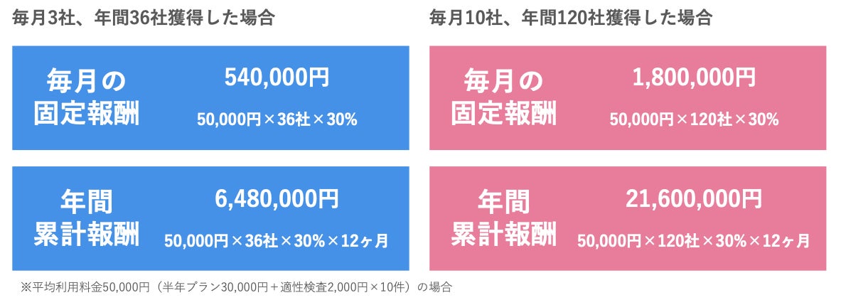 - 導入企業の利用料金(月額基本料金+適性検査料金)の30%をシェア