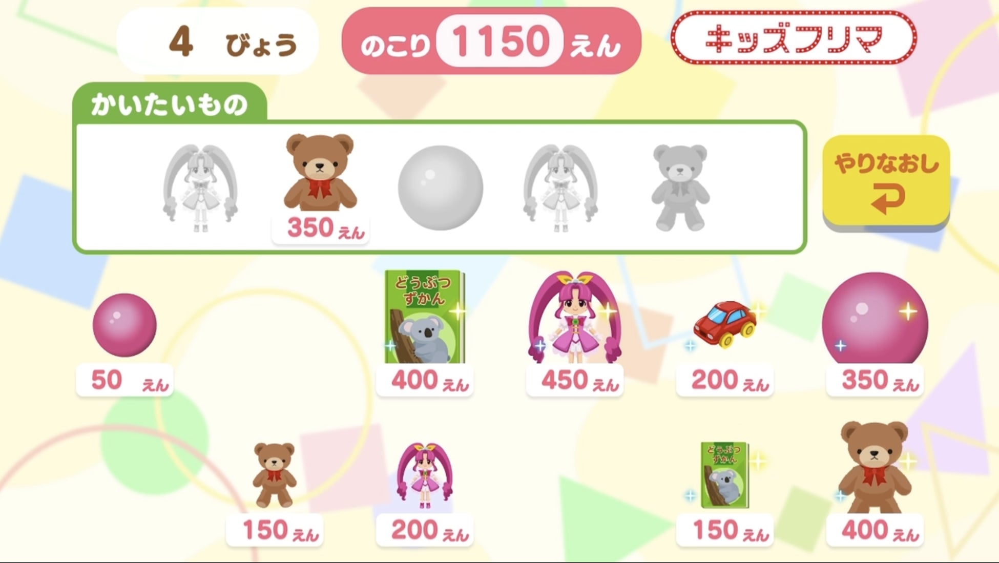 アプリ内店舗では「フリマでおかいもの」、「おつりわたし」、「しゅうしけいさん」の3種のゲームをお楽しみいただけます。