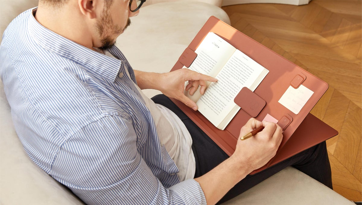 整理整頓が好きなお父さんには、毎日使う必須アイテムを最もクールかつミニマルにすっきり並べて、いつでも瞬時に手に取れる距離におけるデスクマットを。好きなようにに角度調整でき、正しい姿勢を維持することで疲労も軽減できます。