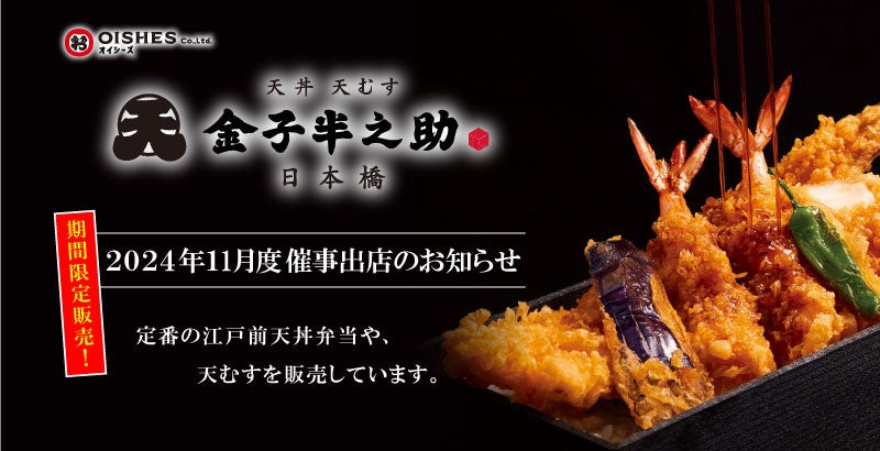 人気飲食店、つけ麺「つじ田」や、「中華そば専門 田中そば店」などをグループで運営するオイシーズ株式会社(所在地:東京都 千代田区 、代表取締役社長:工藤 智、以下:オイシーズ)傘下の株式会社 and RICEが運営するテイクアウト専門店「日本橋 天丼 天むす 金子半之助」は、2024年11月度の