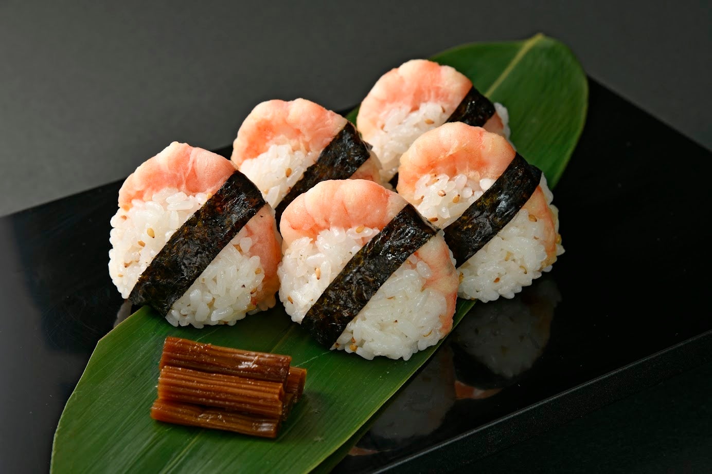 ぷりぷりの海老に、程よい塩味と煎り胡麻を合わせ、サッパリと仕上げた「天むす (白)」。