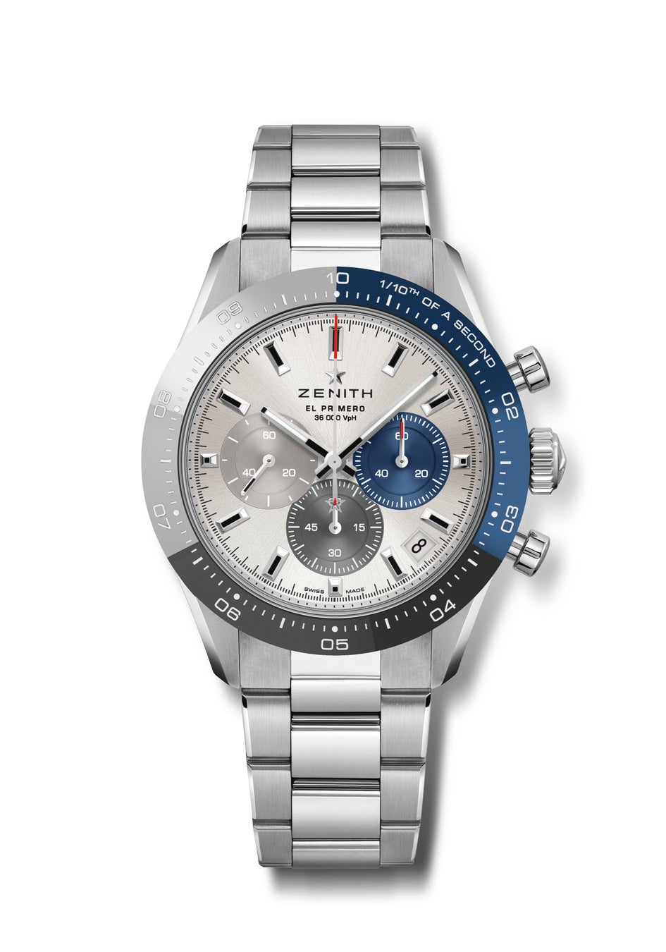 「クロノマスター スポーツ」は、ゼニスが50年以上に渡って探求してきた自動巻クロノグラフの頂点に立つモデルです。1/10秒精度のエル・プリメロ 3600 自動巻クロノグラフムーブメントを搭載し、3色の文字盤など一目でわかるエル・プリメロを象徴するデザイン要素を組み合わせた、現代のクロノグラフのアイコンです。