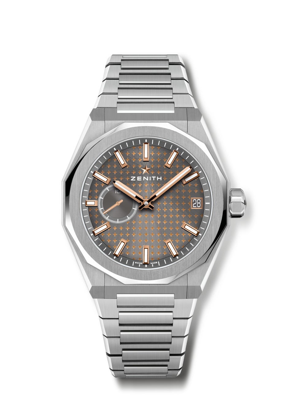 2022年に大きな反響をもって迎えられた「デファイ スカイライン」コレクションから、輝きのあるアンスラサイトの文字盤にローズゴールドの4つの点を結んだ星のモチーフを刻印し、針とアワーマーカーにもローズゴールドを配したブティック限定モデルが発表されました。ムーブメントは、1/10秒精度を誇る高振動エル・プリメロ3620を搭載。ストラップは簡単に付け替えることができ、スチール製ブレスレットと黒のラバーストラップが付属します。