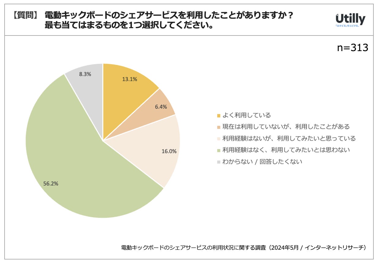 法人SaaSの比較メディアUtilly(運営会社:株式会社GO TO MARKET、所在地:東京都渋谷区)では、2024年5月に電動キックボードシェアサービスの利用に関する調査を実施しました。