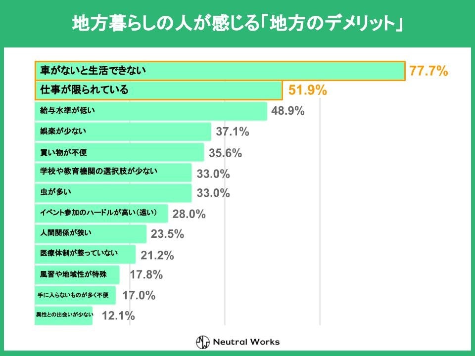 また、上位の回答においては、都会在住者が考えている「地方暮らしのデメリット」と大きなギャップがないことも判明しました。