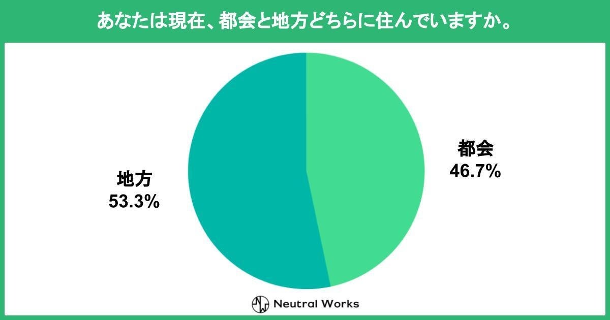 移住支援メディア「移住したい」を運営する株式会社ニュートラルワークス(神奈川県茅ヶ崎市 代表取締役:三木五月、以下「ニュートラルワークス」)は、日本国内在住の方を対象に、居住地に関する調査を実施しました。