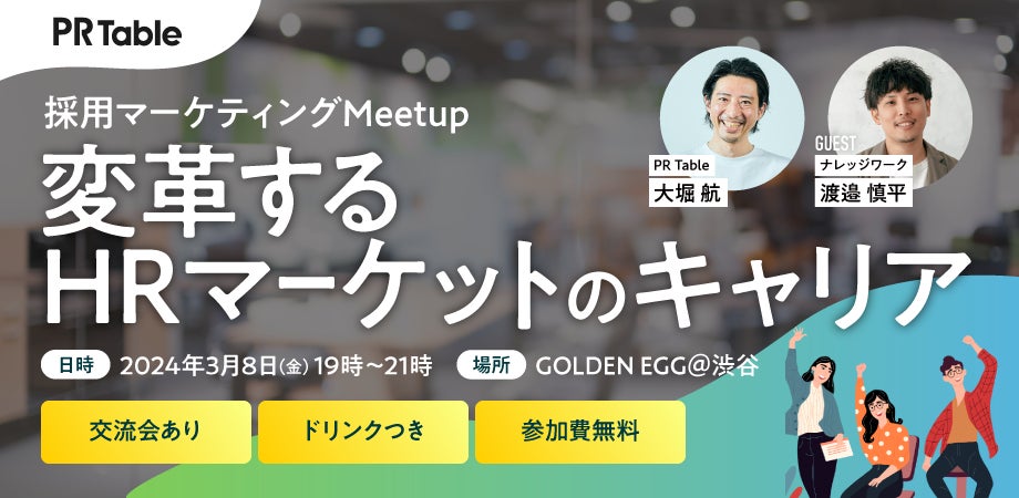 「働く人」から企業の魅力を伝える採用マーケティング支援サービス「talentbook」を運営する株式会社PR Table(住所:東京都千代田区、大堀航・大堀海 以下、当社)は、2024年3月8日(金)にナレッジワークの渡邉慎平氏をお招きし「変革するHRマーケットのキャリア」をテーマとしたミートアップイベントを開催いたします。