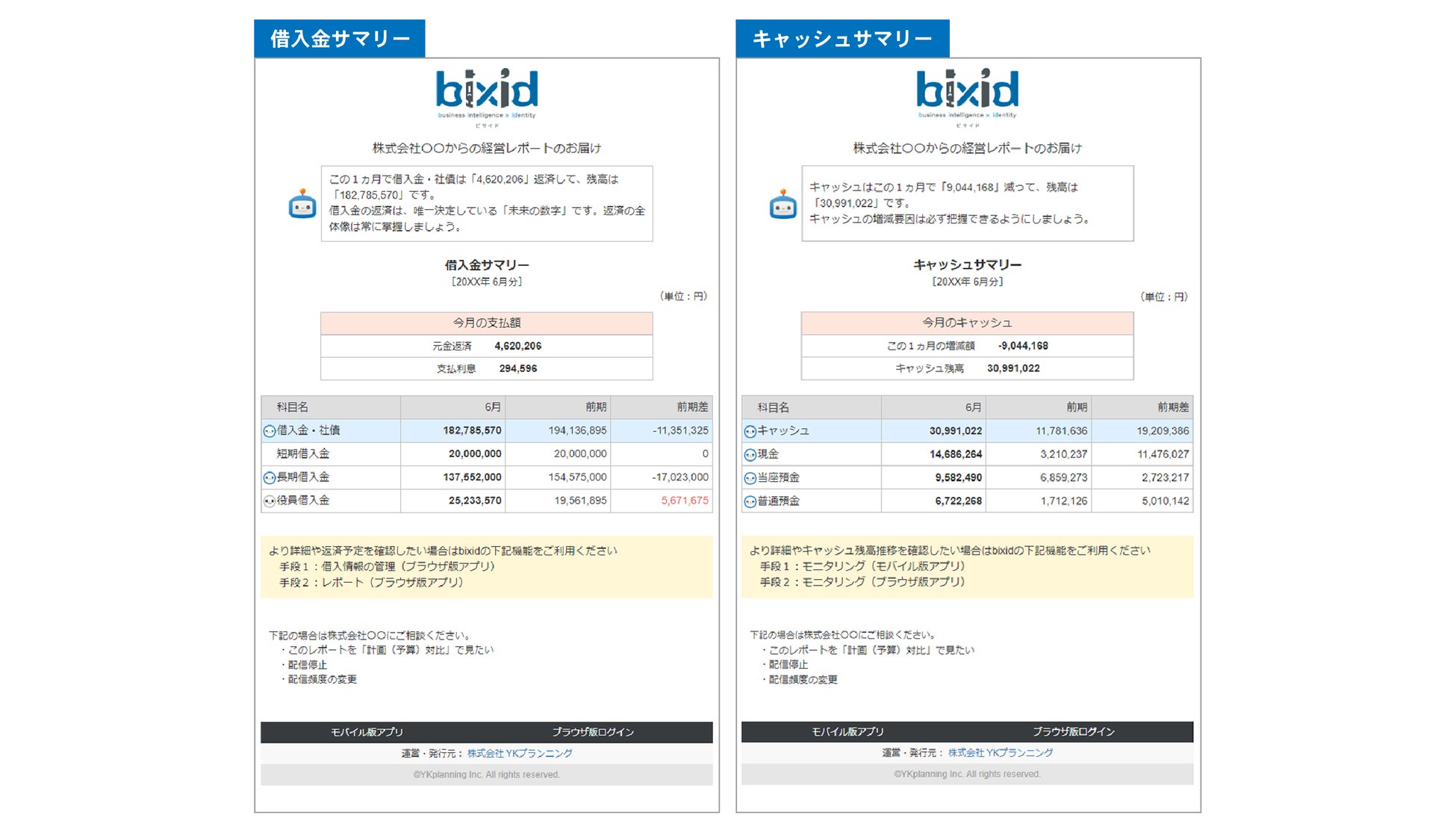 株式会社YKプランニング(本社:山口県防府市、代表取締役社長:岡本辰徳、以下YKプランニング)は、中小企業経営の見える化を実現する経営支援クラウド『bixid(ビサイド)』において有料会計事務所会員向け新機能「経営レポート自動メール」(https://bixid.net/acfirm/index.html)をリリースいたしました。