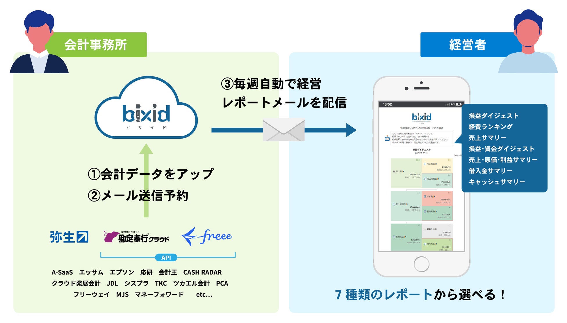 【毎月の作業はたった5分】経営支援クラウド『bixid(ビサイド)』に会計事務所専用サービスの経営レポート自動メールを追加!