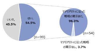 サステナビリティに関連するリスク・機会の特定について言及している企業の割合は54.5%にとどまります(図表4)。一方で、リスク・機会を特定している企業のうち96.3%は特定したリスク・機会を踏まえたマテリアリティに沿った戦略の開示を行っています(図表4)。