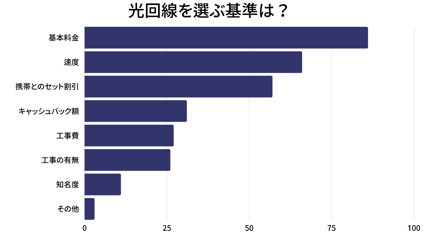 2位には「速度」という回答が多く、リモートワークをする人や動画をたくさん見る人には欠かせない要素ですね。