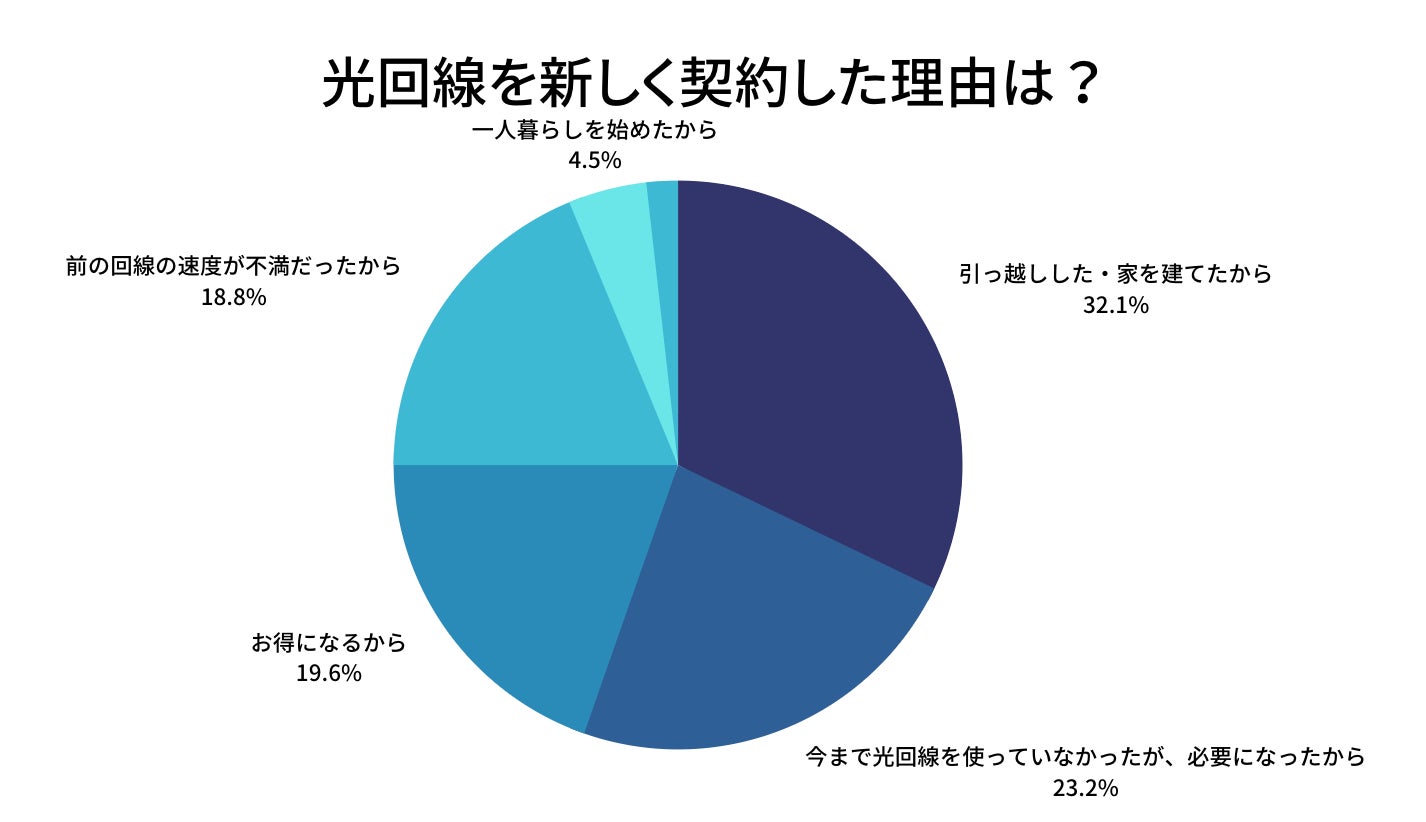 「引っ越ししたから・家を建てたから」という理由が最多の32%でした。やはり新しい生活を始めるにあたって、光回線の契約を見直す方が多いようです。