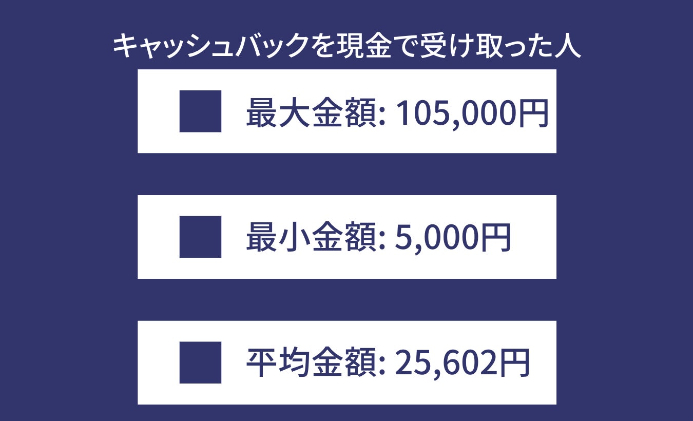 現金で受け取った人のうち金額は最大で105,000円、最低が5,000円という回答でした。