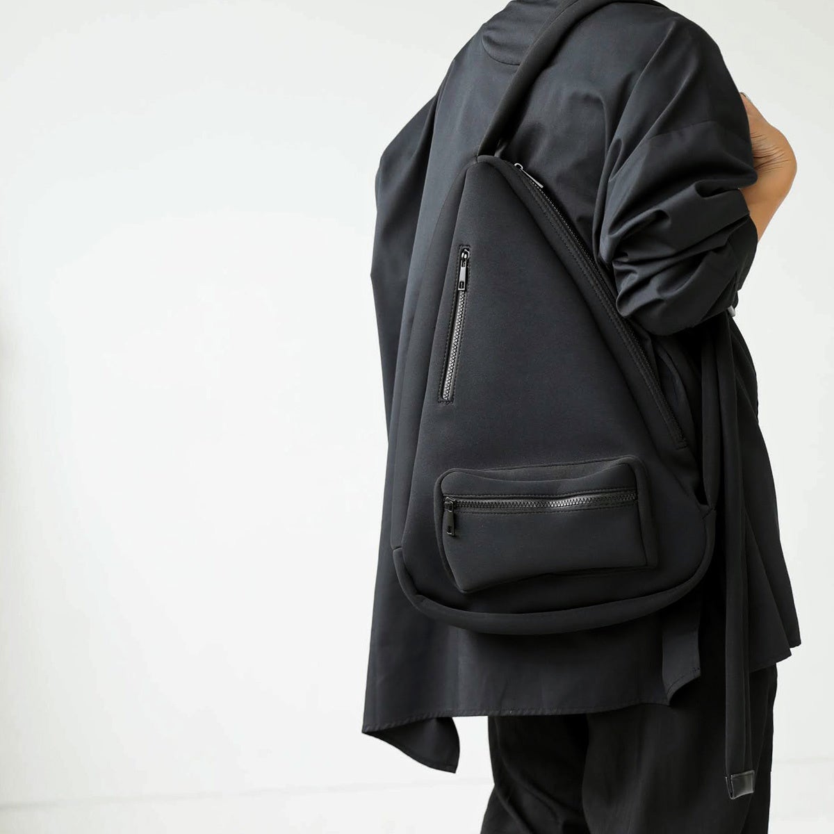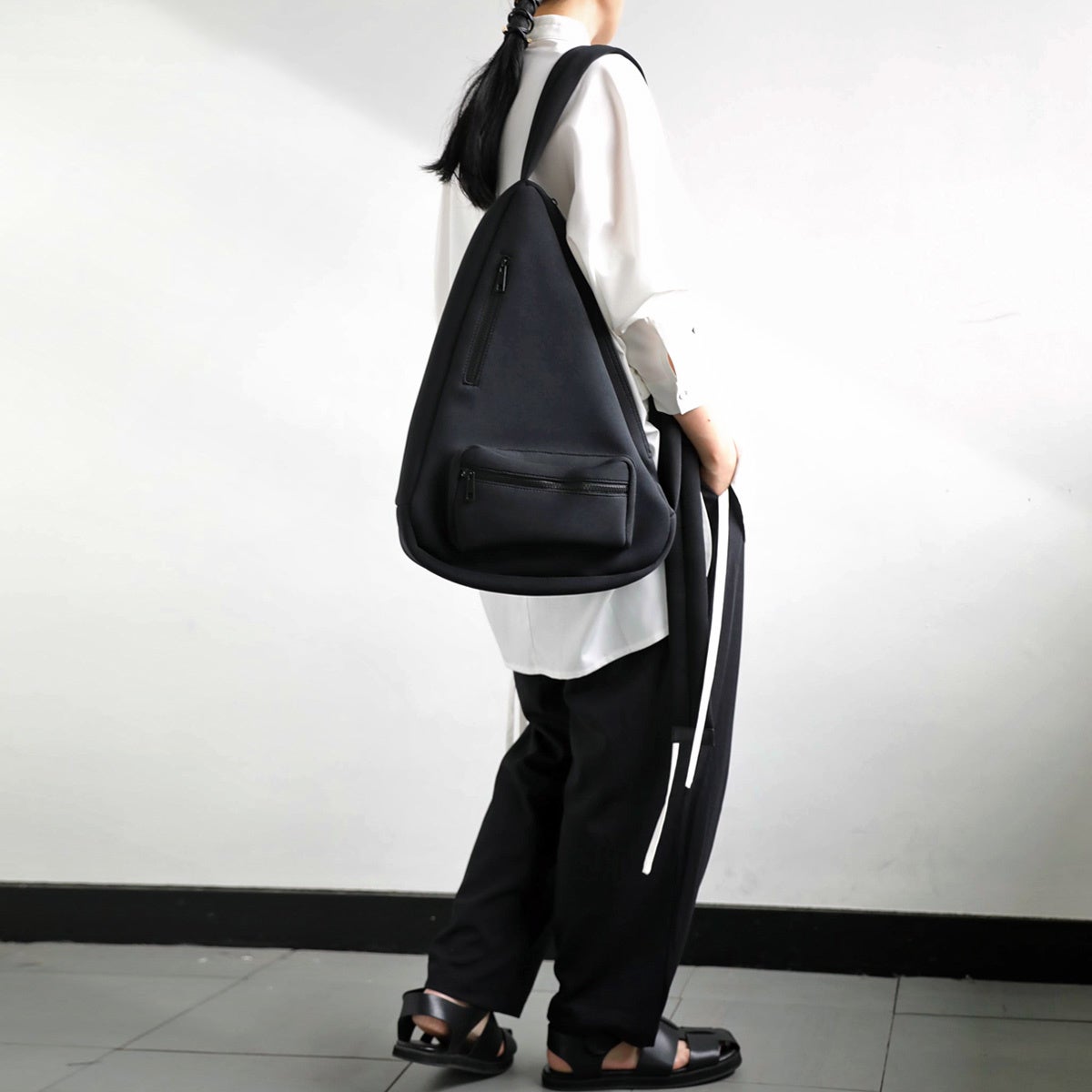 オールブラックでも引き立つスポーティーなデザイン。大きすぎず小さすぎない絶妙なサイズ感で、サッと背負うだけで雰囲気たっぷりです。