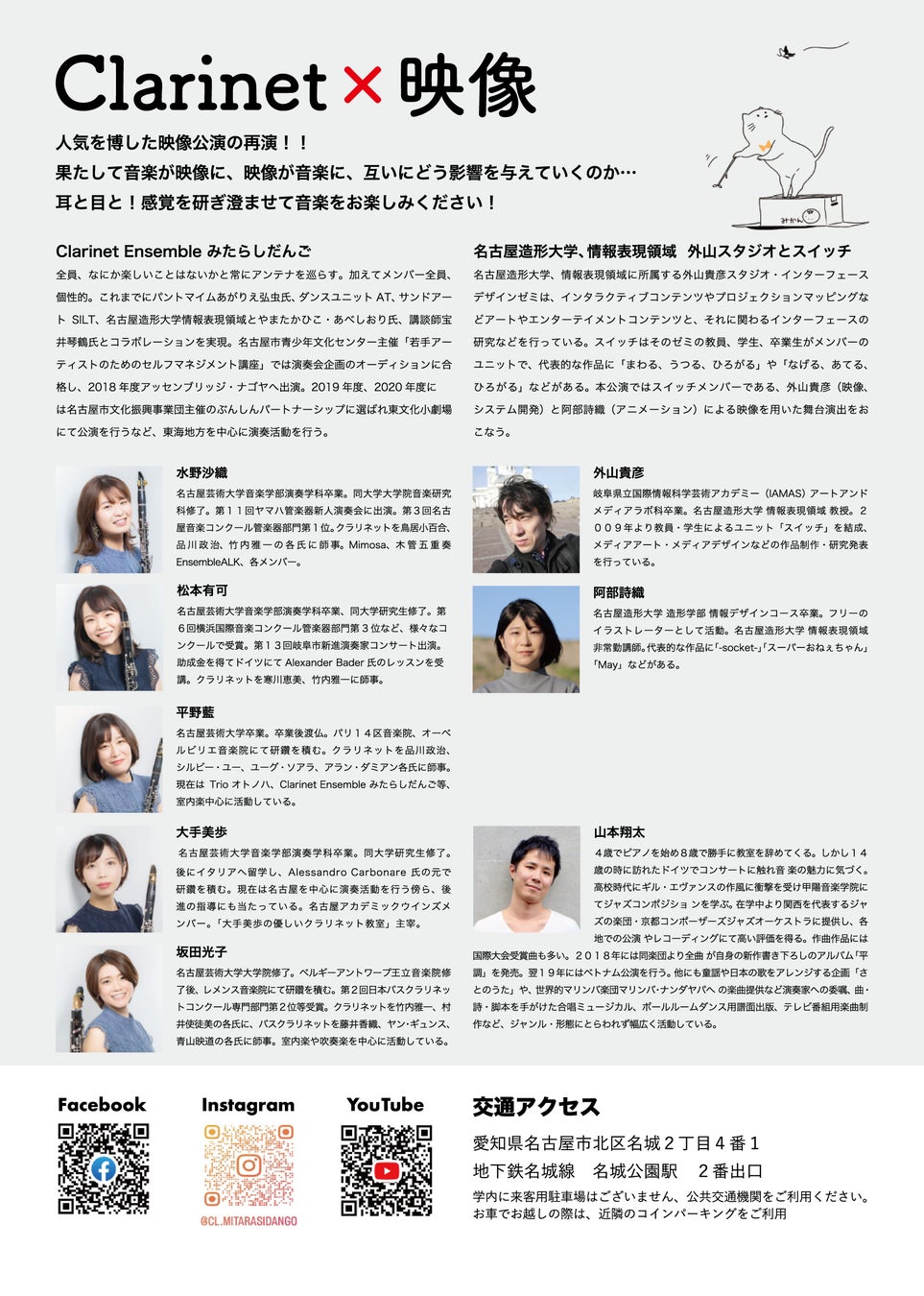 2020年2月に初演した「Clarinet × 映像」を2023年8月6日(日)名城公園キャンパス 名古屋造形大学ホールにて再演します。