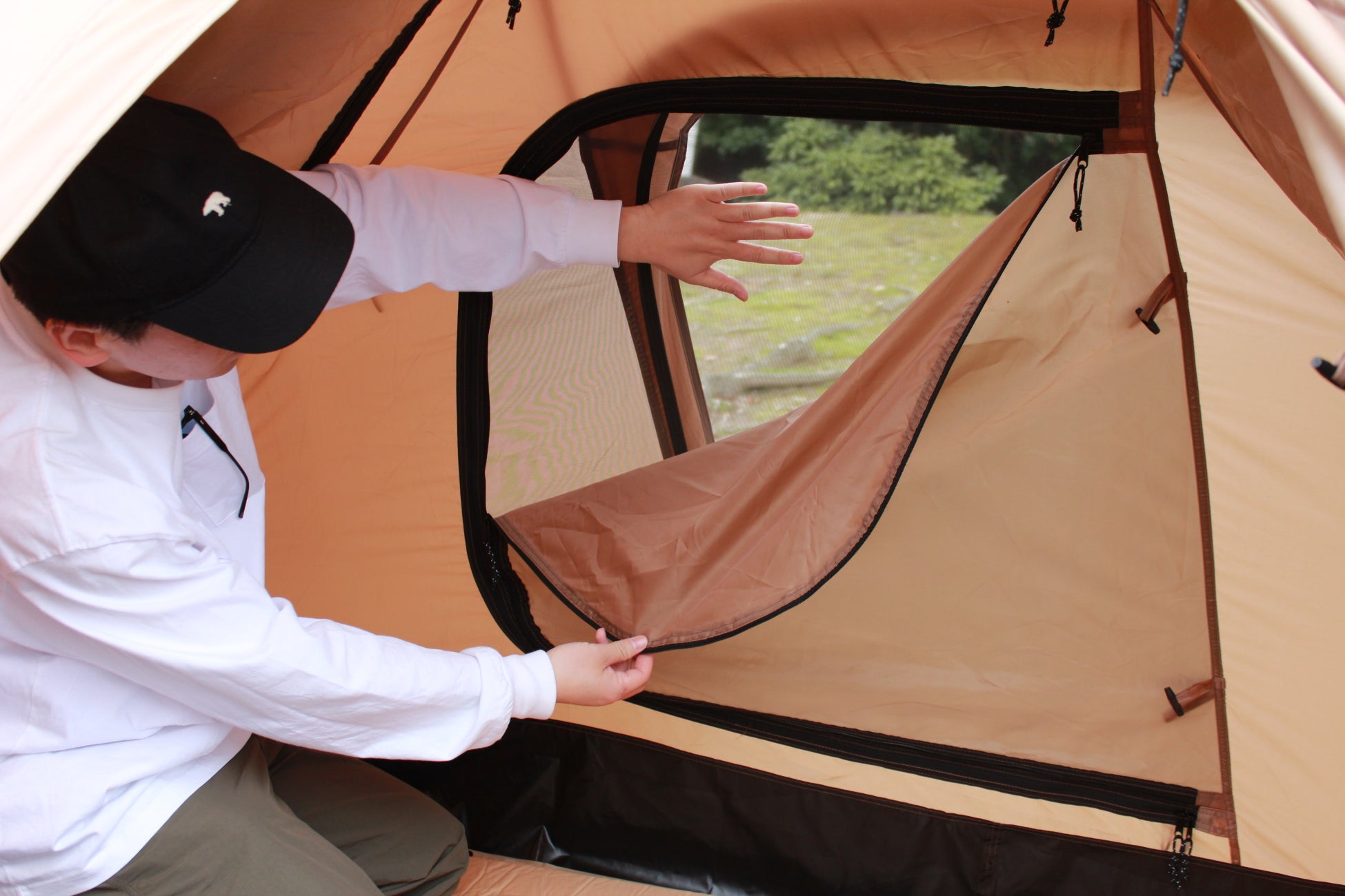 左右2か所に開閉可能な換気口を設置しており、テント内の通気性を保ち、熱や湿気を排出します。