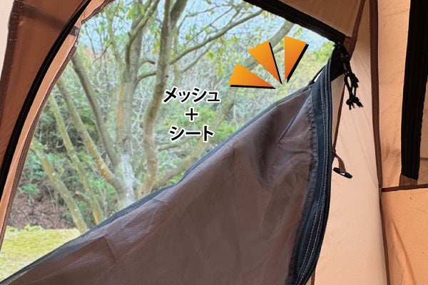 出入り口部分のファスナー仕様がリニューアル!!ソロキャンプにおすすめなツーリングテントがさらに出入りしやすくなりました。また、網戸のみでも使用できるため、温度調整もしやすく、1年中お使いいただけます。