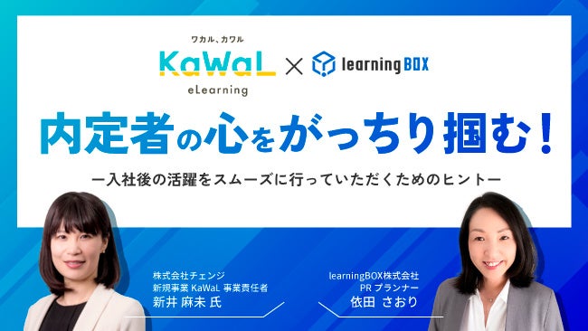 誰でも簡単にWEB学習環境が構築できる学習管理システム「learningBOX」、チェンジが提供しているビジネスの基礎スキルを効率的に学べる「KaWaL」それぞれの内定者研修での活用方法や、より効果的な相互利用のメリットなどもご紹介します。