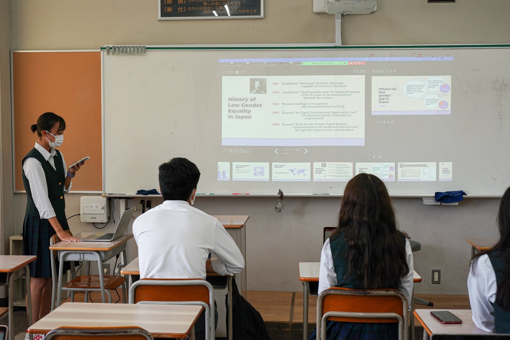 音楽など発表内容はさまざま。生徒たちは事前にプレゼン資料を丁寧に作り上げ、発表後には